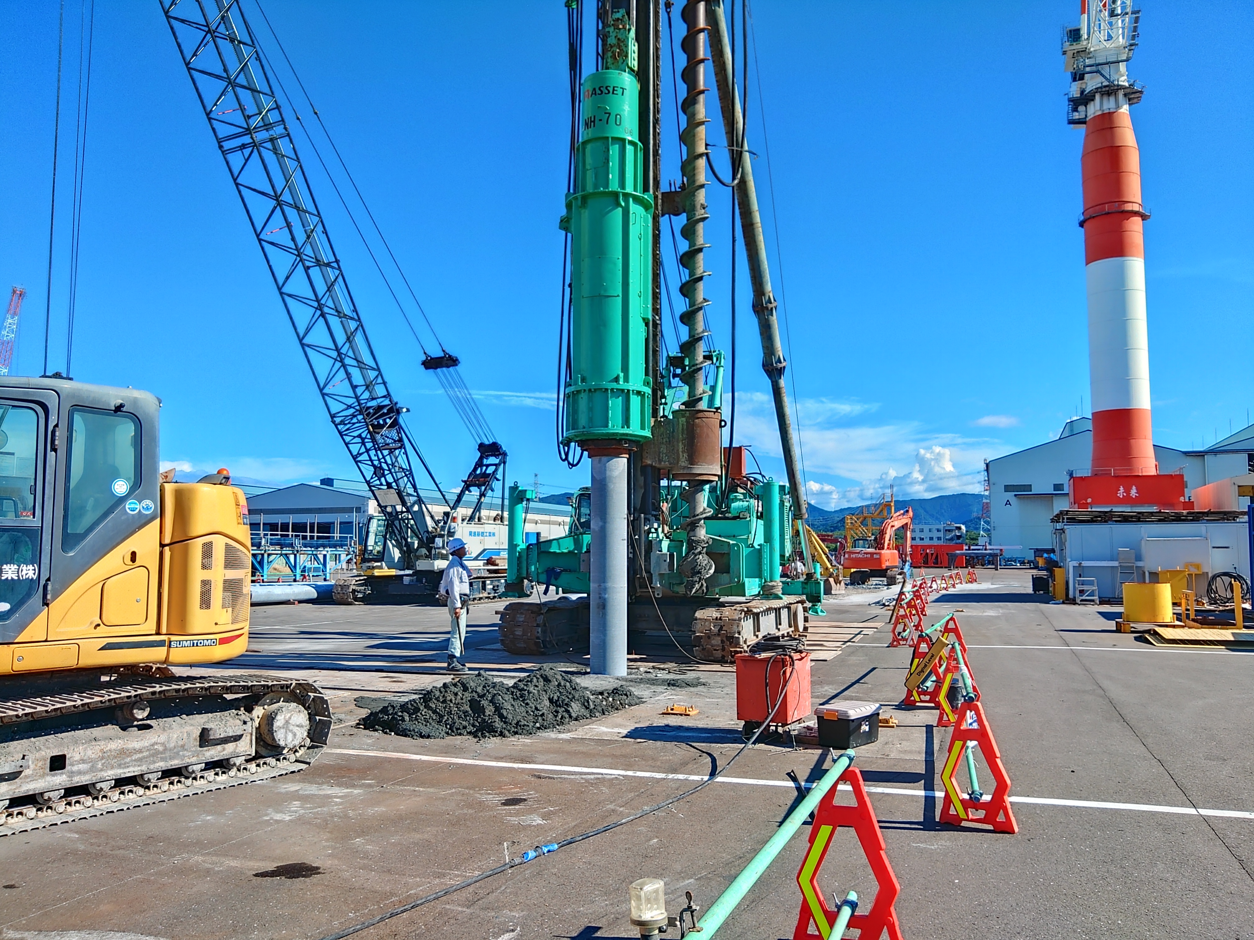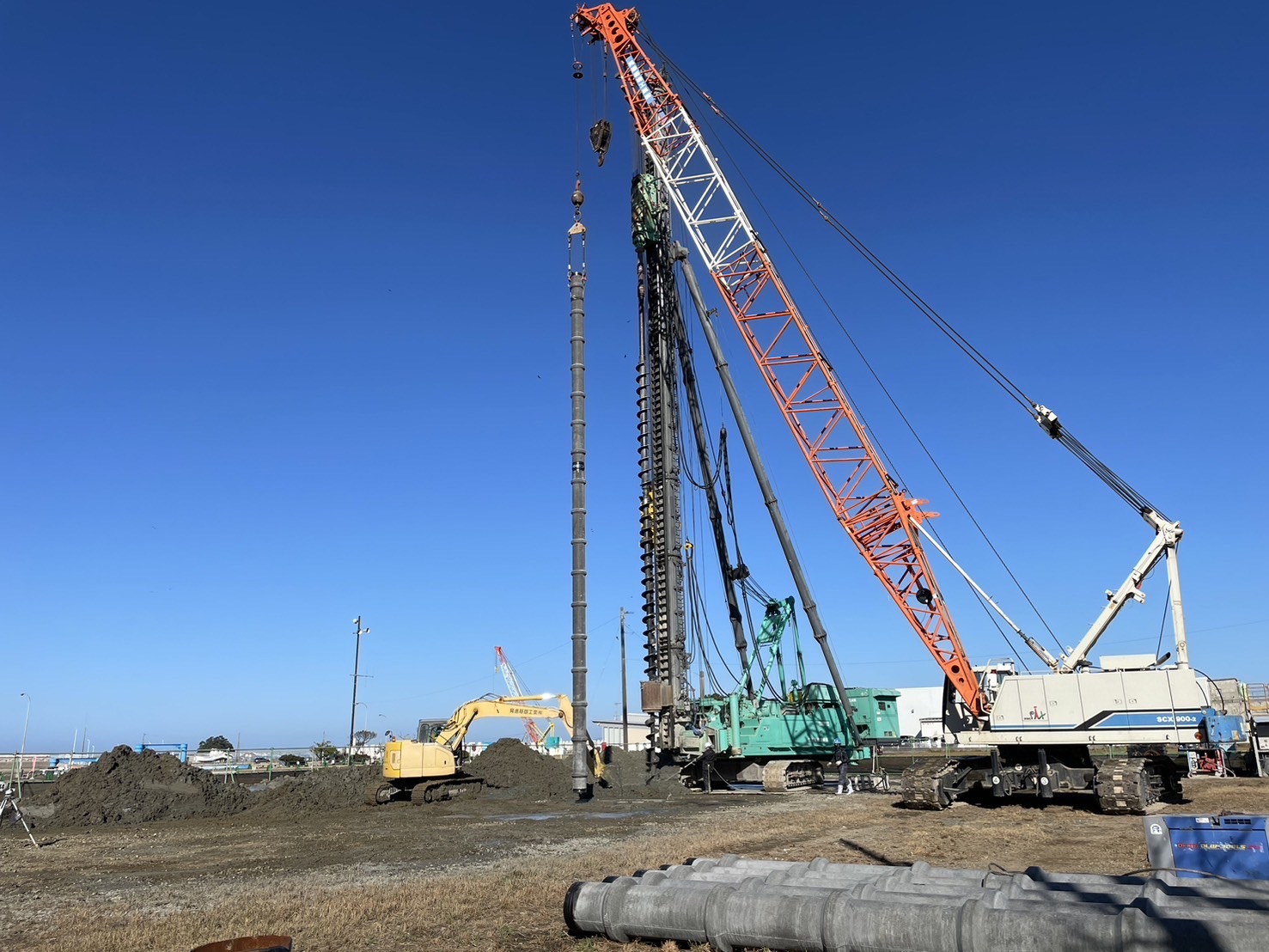 グループ会社の工場で杭を製造し、現場へ杭を搬入し、地中へ埋設する工事までワンストップで行っています。